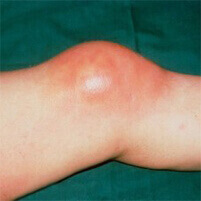 | Bursit | Shikastlangan bo'g'im hududida kuchli shish. Bo'g'imning harakatchanligi yoki oyoq-qo'lning to'liq harakatsizligi. Palpatsiya paytida og'riqli hislar. Shish sohasida noaniq chegaralar bilan terining qizarishi. | Yiringli to'qimalarning shikastlanishi. Qon zaharlanishi. Fistulalarning paydo bo'lishi. Qo'shimchaning motor qobiliyatini to'liq yo'qotish." |